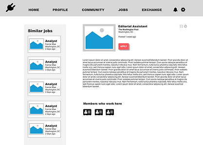 Our goal was to create an intuitive job-seeking platform that helps diverse applicants find meaningful connections and jobs in their field. We had three weeks to conduct user interviews, design and test an interactive prototype to help students and recent graduates with their job search.